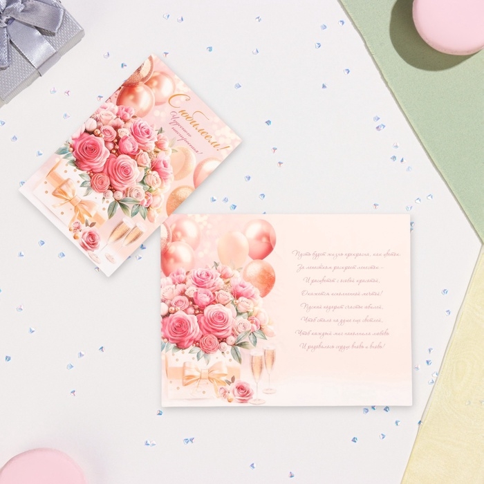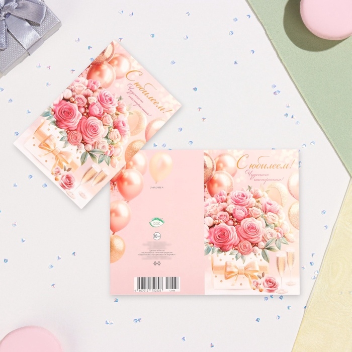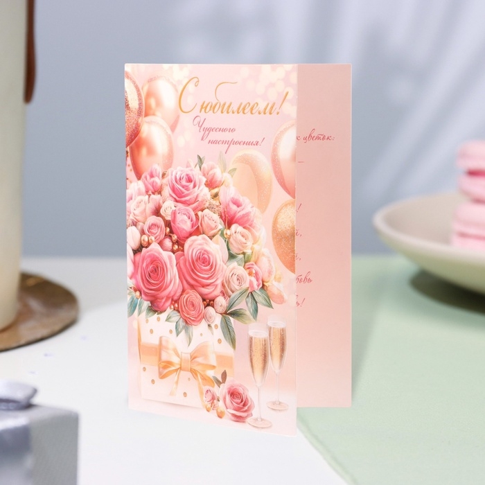 Открытка "С Юбилеем!" глиттер, конгрев, цветы в коробке, 12,5 х 19,4 см