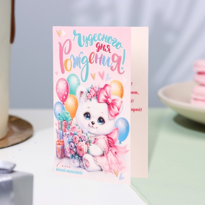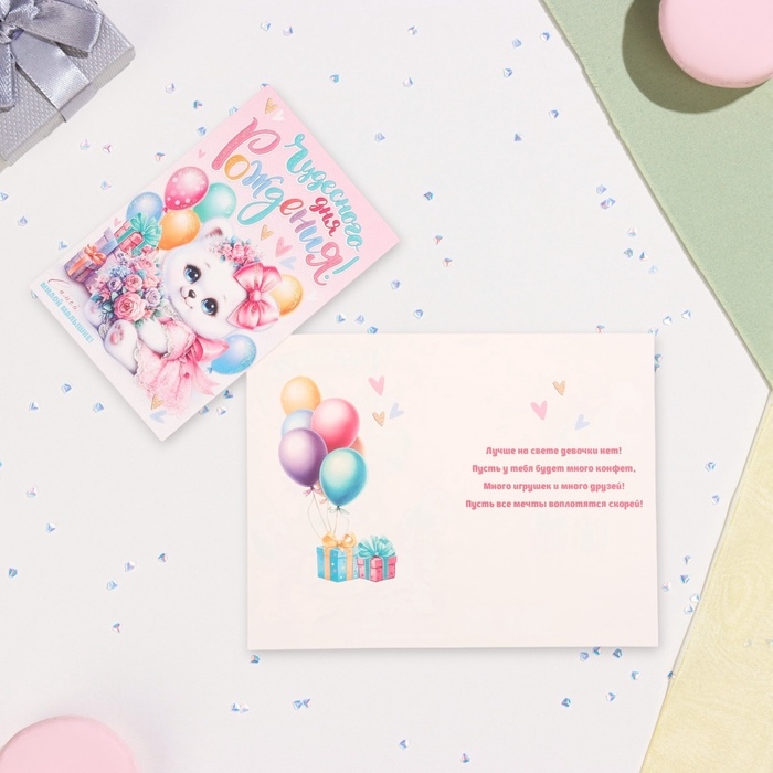 Открытка "Чудесного Дня Рождения!" глиттер, конгрев, 12,5 х 19,4 см
