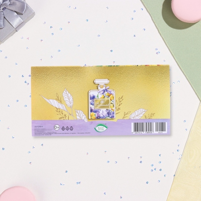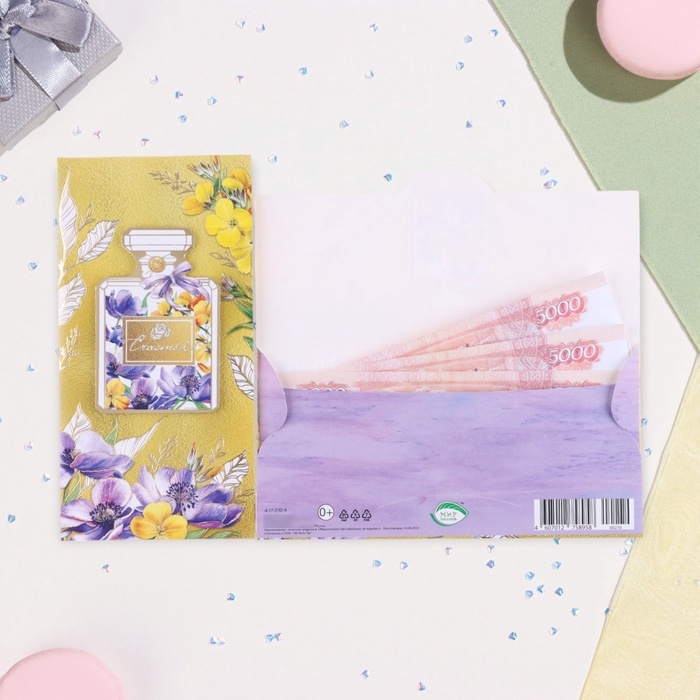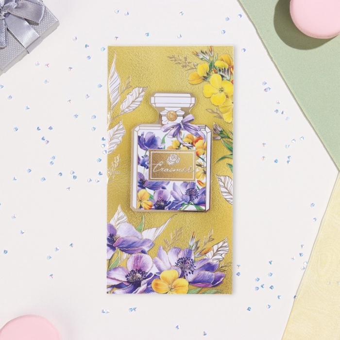 Конверт для денег "Счастья!" деталь на скотче, тиснение, флакон, 17 х 8 см