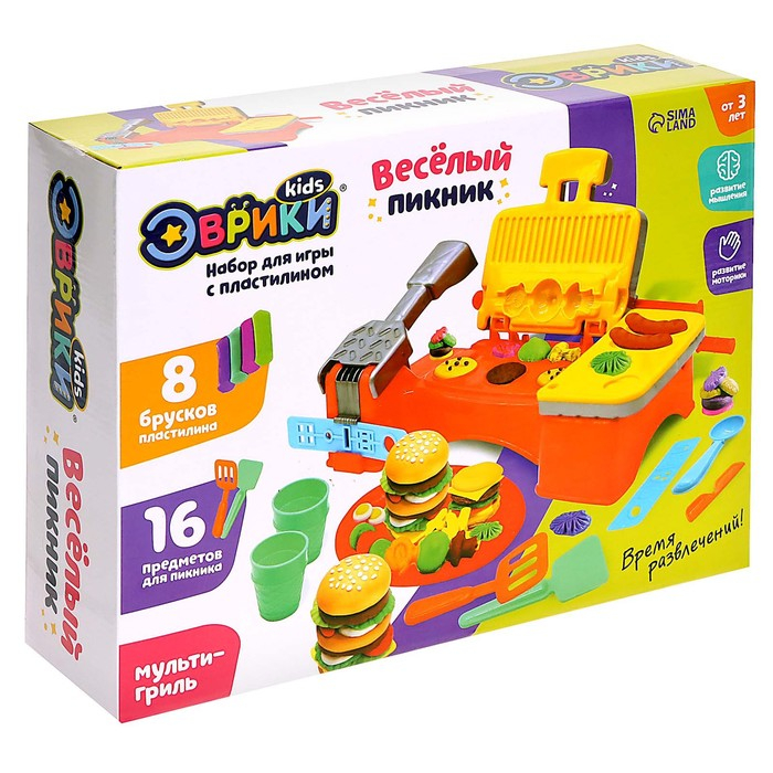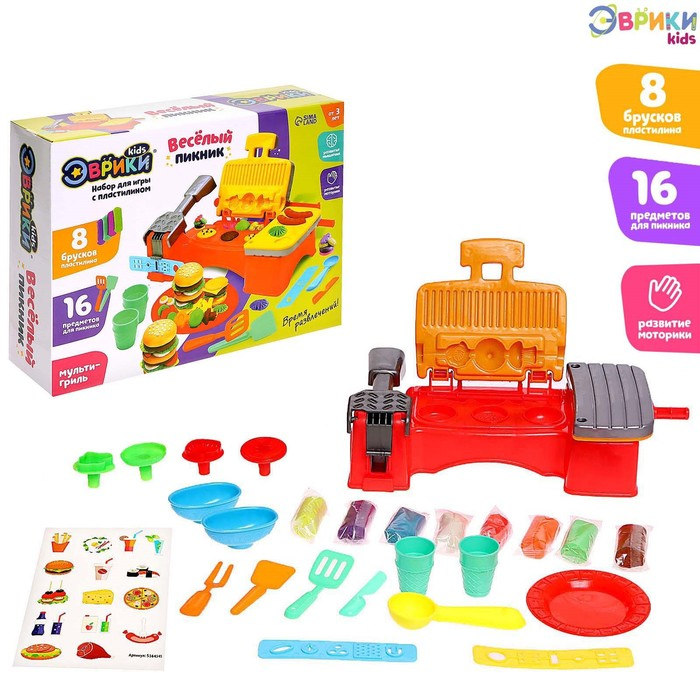 Набор для творчества «Весёлый пикник» — это комплект разнообразных предметов для лепки из пластилина. В нём можно найти несколько интересных инструментов и формочек, а также баночек с разноцветной массой для лепки.