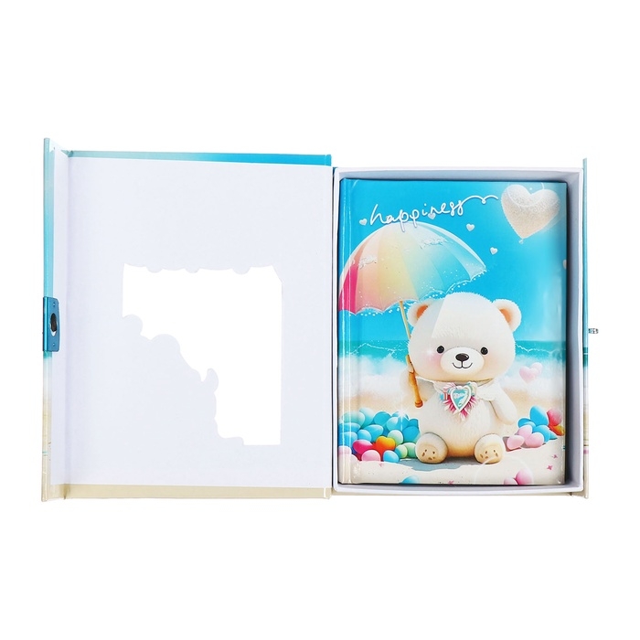 Записная книжка подарочная, 45 листов, линия, на замке Мишки (16,3х12,7см)