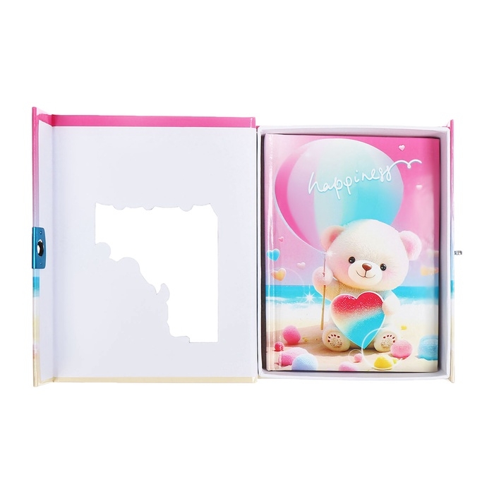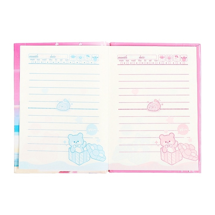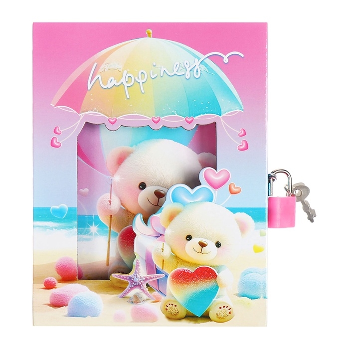 Записная книжка подарочная, 45 листов, линия, на замке Мишки (16,3х12,7см)