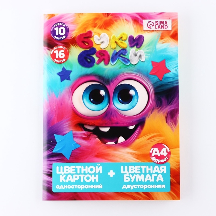 Набор: цветной картон 10 листов 220 г/м² односторонний и цветная бумага, 16 листов двусторонняя А4