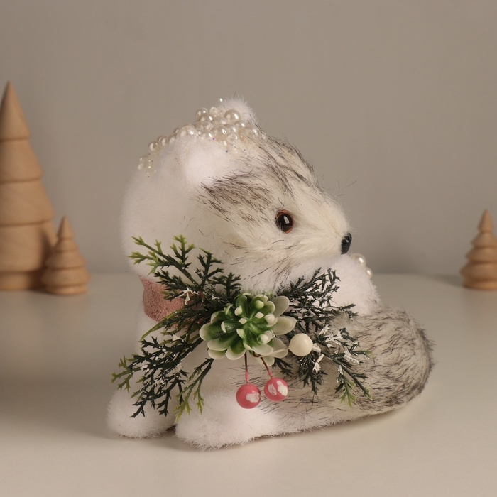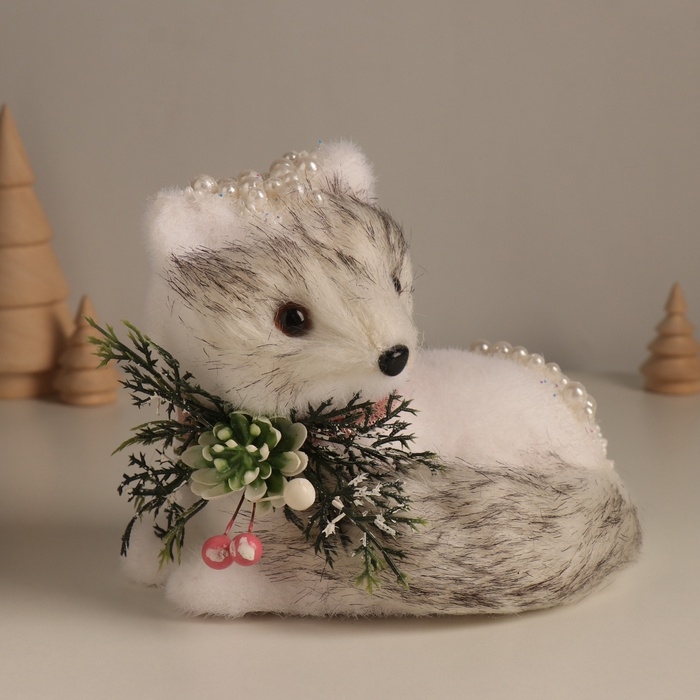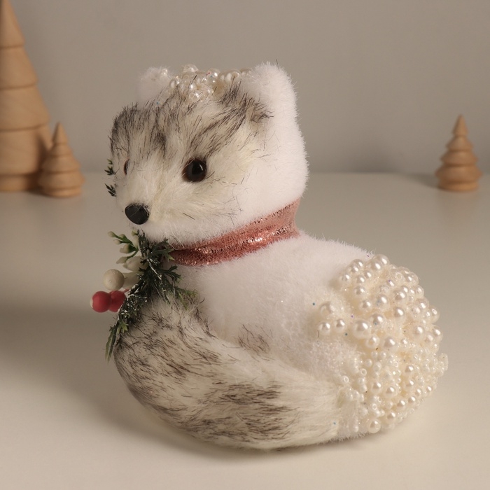 Декор "Белая лисичка в бусинках" 15х17х13 см