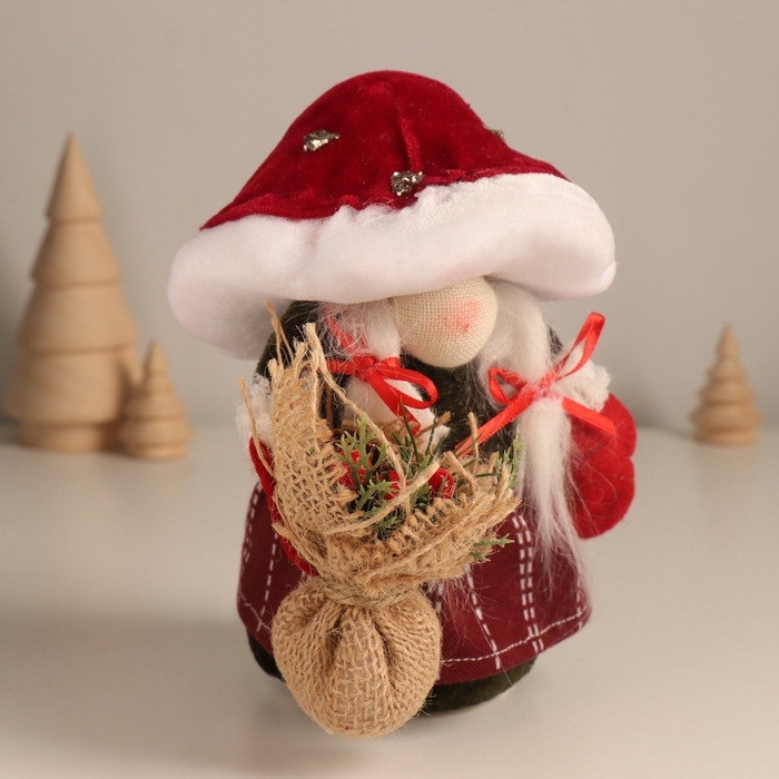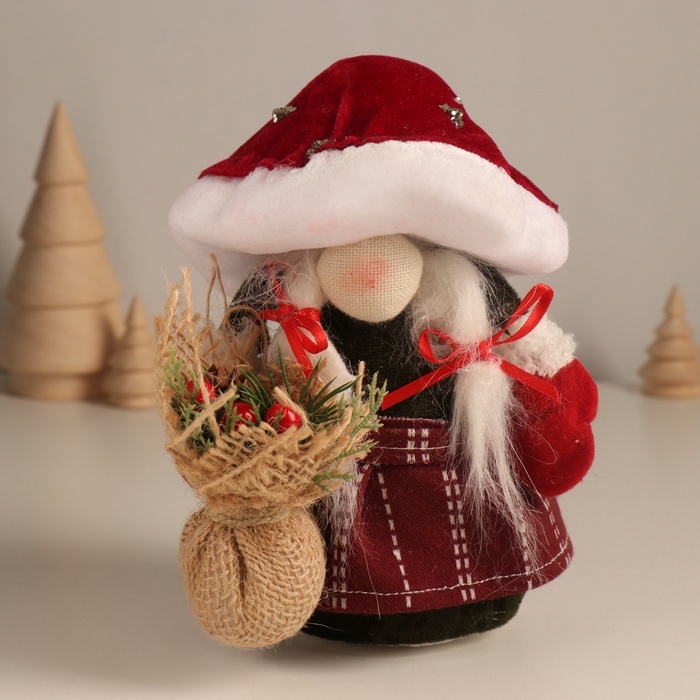 Декор "Бабуся-мухомор с новогодней корзиной" 15х12х16 см