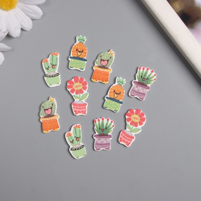 Декор для творчества дерево "Весёлые растения в горшочках" набор 10 шт 2,7х1,5 см