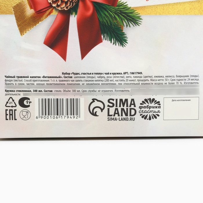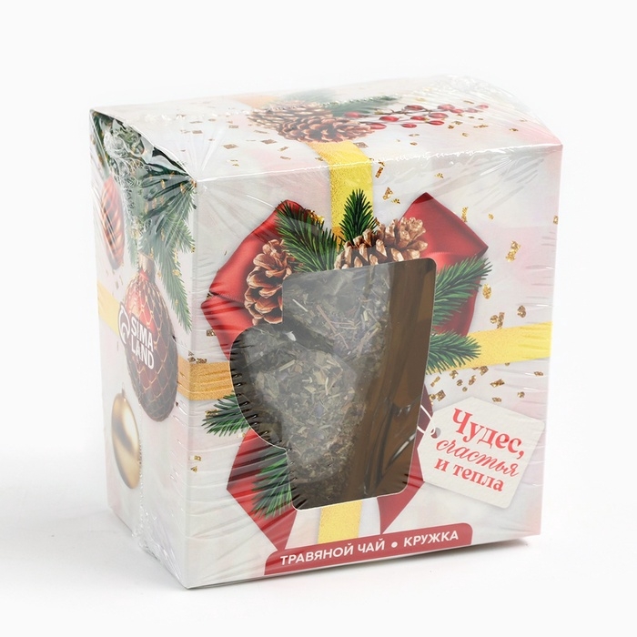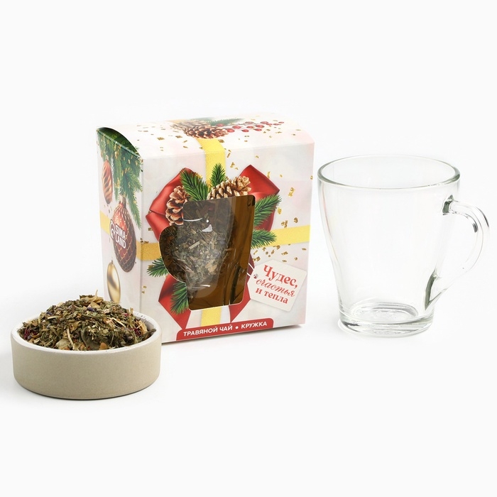 Подарочный набор новогодний «Чудес, счастья и тепла» чай травяной, 50 г и кружка стеклянная, 300 мл