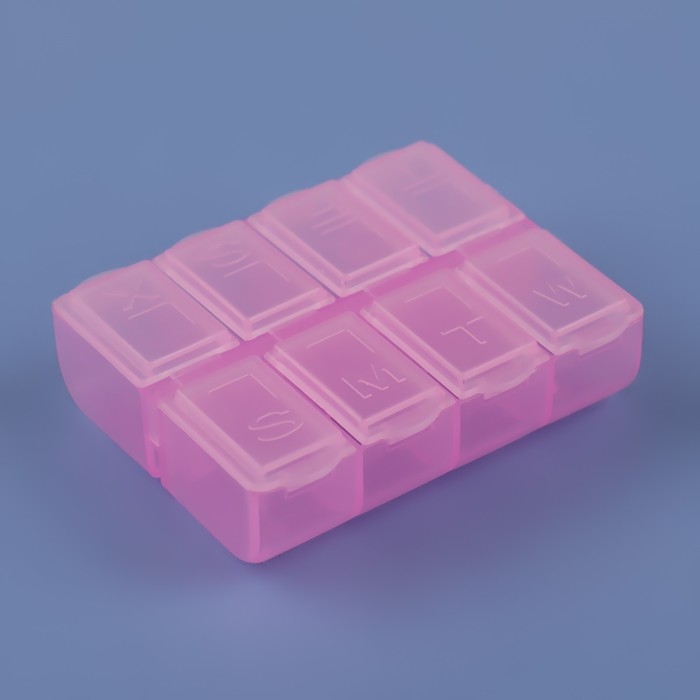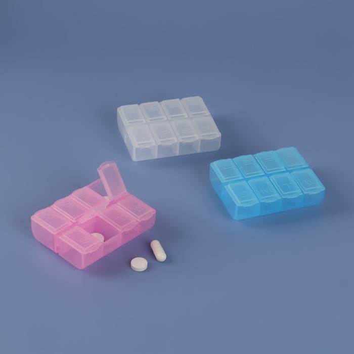 Таблетница, английские буквы, 7,4 × 6,2 × 2,1 см, 8 секций, цвет МИКС