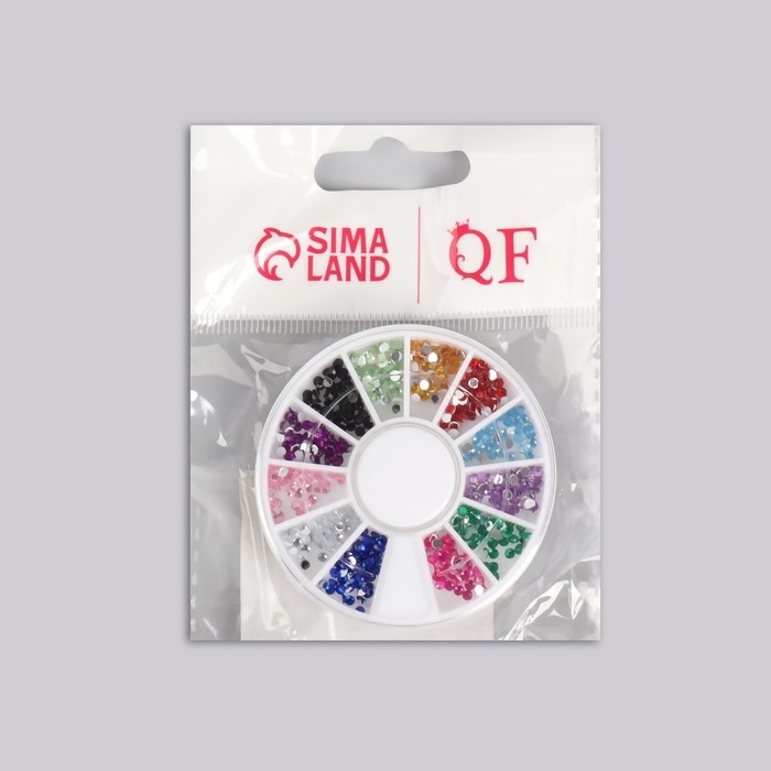 Стразы для декора, 12 ячеек, 2 мм, разноцветные