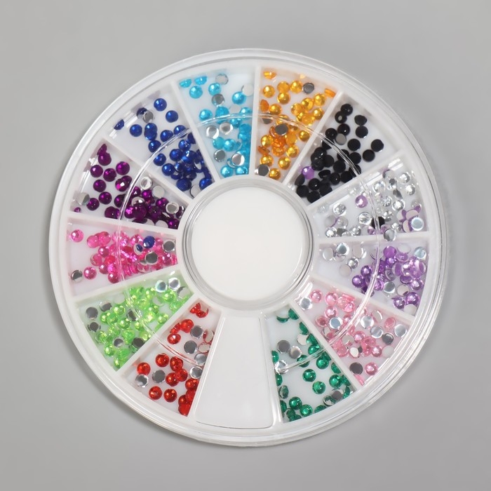 Стразы для декора ногтей, 12 ячеек, 2 мм, разноцветные