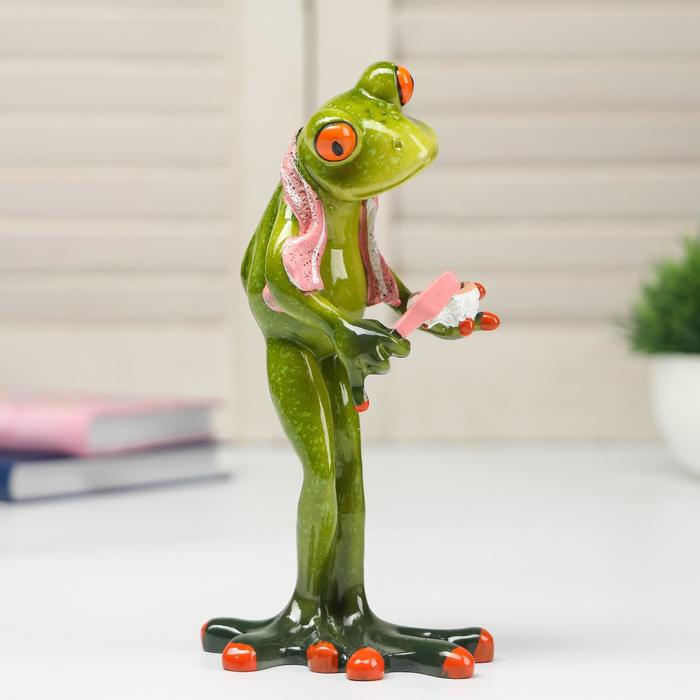 Сувенир полистоун лак "Лягушонок чистит челюсть" 16,5х5,8х8,5 см