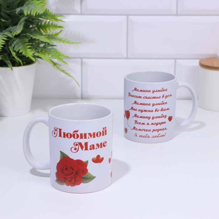 Кружка чайная керамическая "Любимой маме" роза