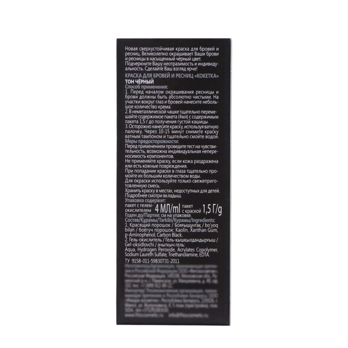 Новая сверхустойчивая краска «Кокетка» великолепно окрашивает брови и ресницы в насыщенный чёрный цвет. Подчеркните свою неотразимость и индивидуальность — сделайте свой взгляд ярче!