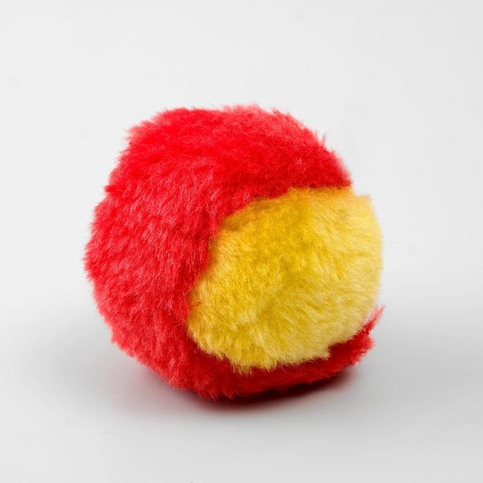 Шарик меховой для кошек, жёлтый/красный