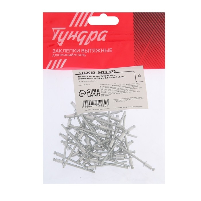 Заклёпки вытяжные ТУНДРА, алюминий-сталь, 50 шт, 3.2 х 6 мм
