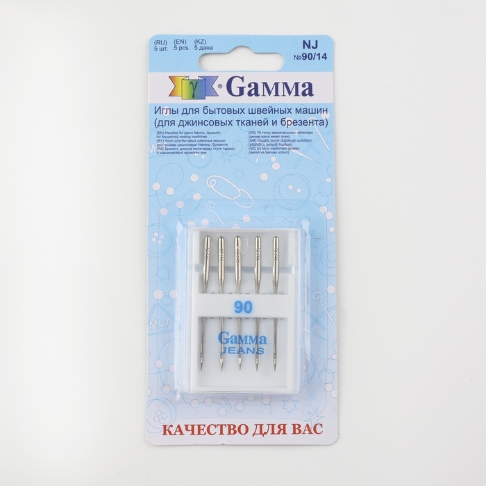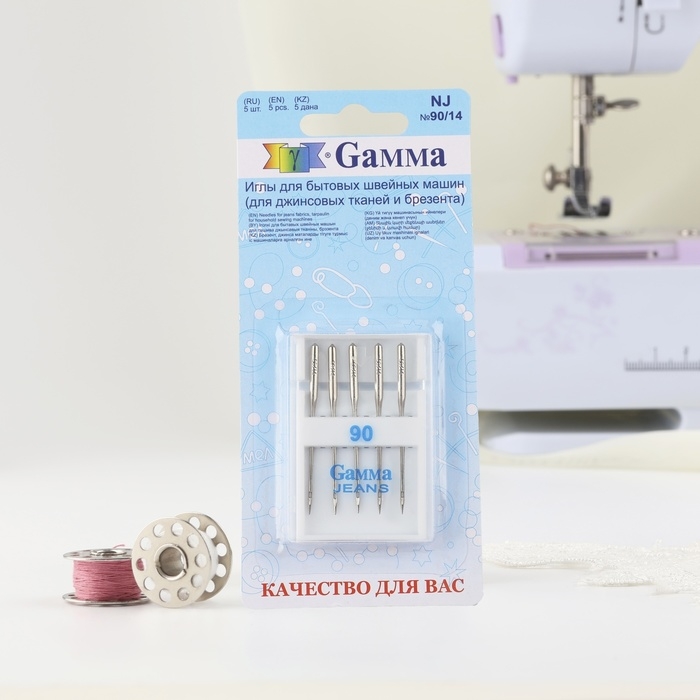 Иглы для бытовых швейных машин, для джинсовых тканей и брезента, №90/14, 5 шт, NJ