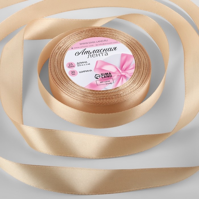 Лента атласная, 20 мм × 23 ± 1 м, цвет бежевый №267