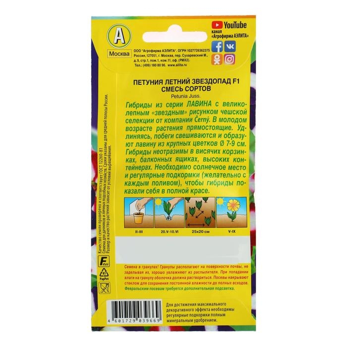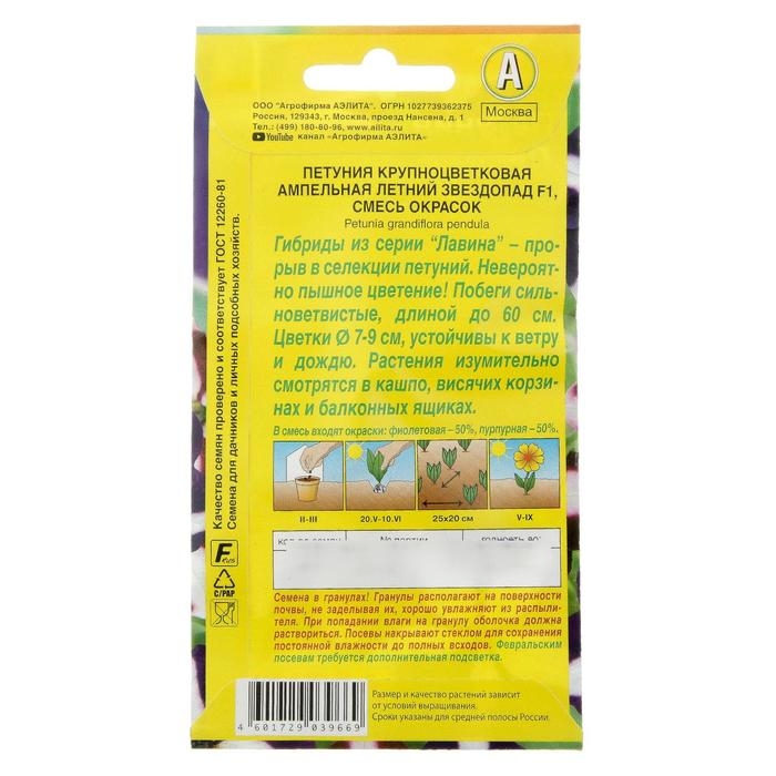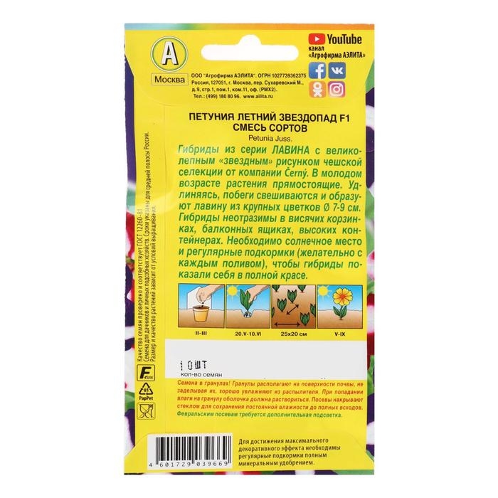 Семена цветов Петуния "Летний звездопад F1" ампельная, смесь окрасок, О, 10 шт