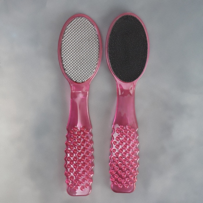 Кожа на ногах не такая нежная, как кожа рук, и требует особого внимания и ухода. Воспользуйтесь тёркой для ног. Двухсторонняя тёрка-наждак – это универсальный помощник в процессе ухода за ногами. Она бережно очистит огрубевшую кожу от мозолей и натоптышей, и ваши пяточки примут здоровый и ухоженный вид. С одной стороны находится тёрка, которая поможет удалить огрубевшую кожу, а с другой – наждак, который придаст пяткам мягкость и обработает сухие мозоли.