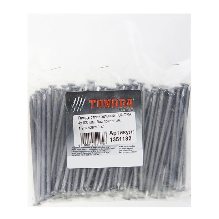 Гвозди ТУНДРА, строительные, ГОСТ 4028-63, без покрытия, 4х100 мм, фасовка 1 кг