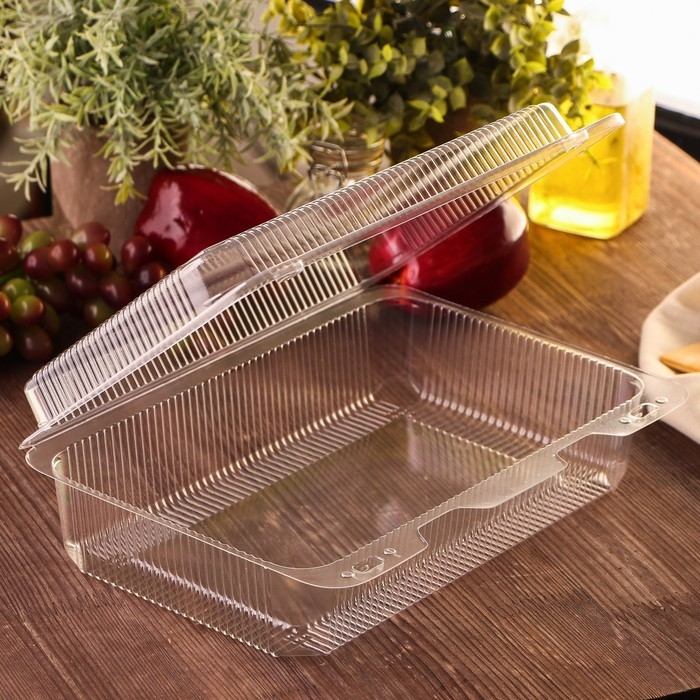 Контейнер пластиковый одноразовый с неразъёмной крышкой УТ11/1, 28×20,5×8,2 см, внутренний 25,6×15,6×7,5 см, цвет прозрачный