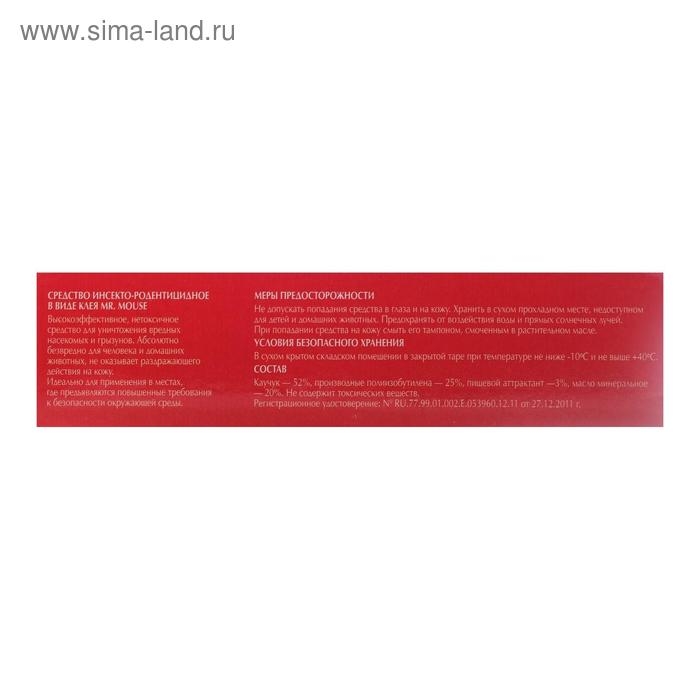 Клей от мышей, крыс и других насекомых является отличным средством в борьбе с насекомыми (тараканами, муравьями и пр.) и домашними грызунами (мышами, крысами, полевками), а так же принцип действия данного клея является одним из самых оптимальных средств для отлова вредителей. В комплектации: клей Mr.Mouse и подробная инструкция к применению. Данное средство не содержит токсических и химических веществ, которые могли бы вызвать реакцию у человека или домашних животных, поэтому его можно применять даже на кухне и в ванной комнате. Ловушки следует расставлять в местах предполагаемого обитания грызунов — возле стен, непосредственно возле нор и в труднодоступных углах квартиры.