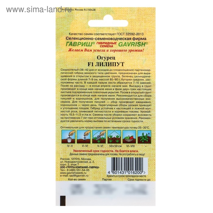 Семена Огурец "Лилипут", F1, пикуль, серия 1+1, 20 шт