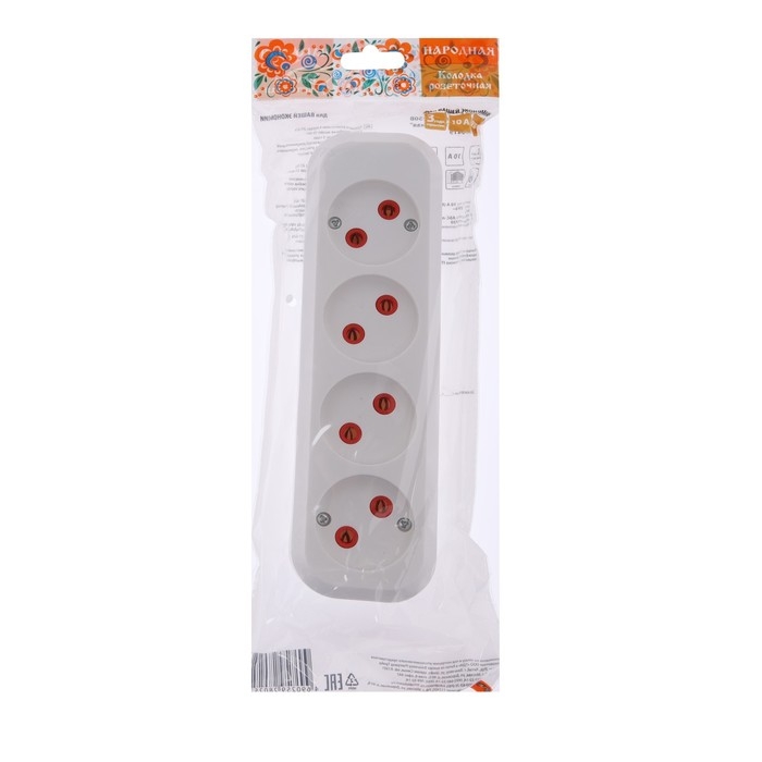 Колодка розеточная TDM"Народная" 2П, 4 гнезда, 10А, 250В, без заземления, белая, SQ1806-0419