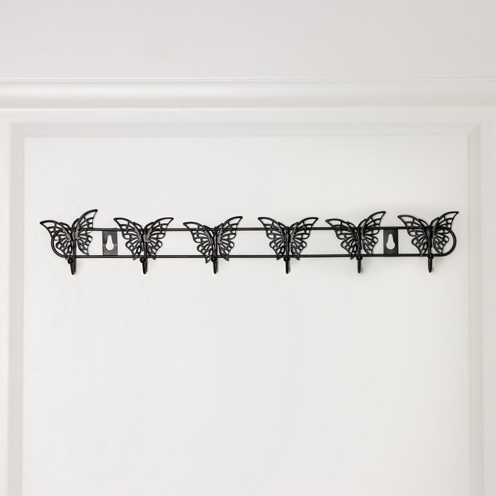 Вешалка настенная Доляна «Бабочки», 6 крючков, 41,5×7,5×3,5 см, цвет чёрный