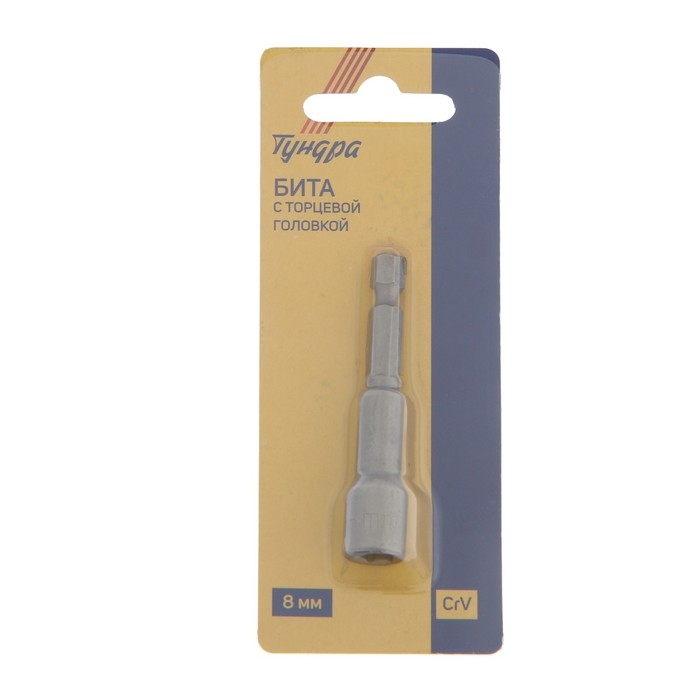 Бита с торцевой головкой ТУНДРА, сталь CrV, магнит, 8 х 65 мм