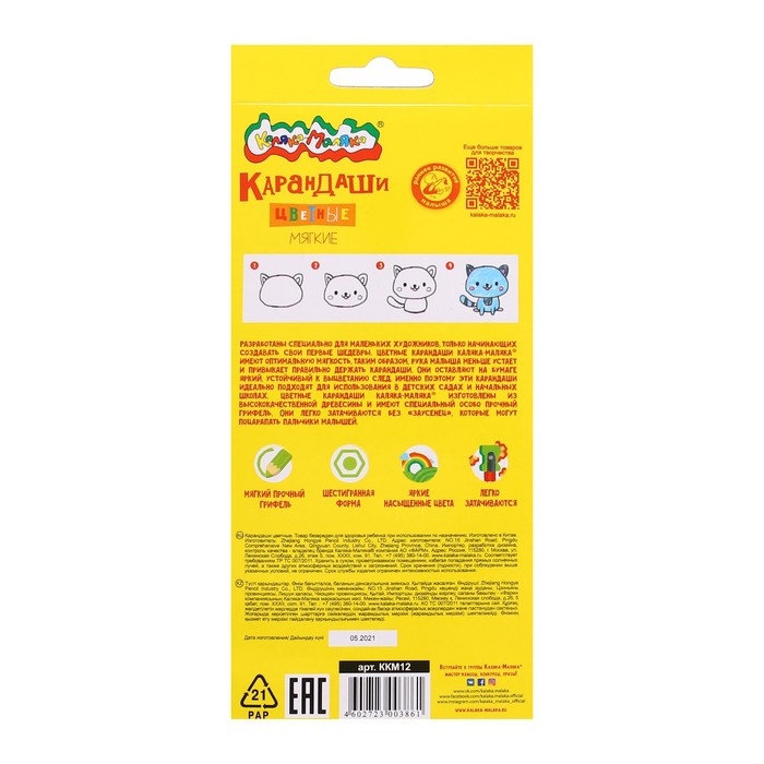 Детские карандаши рисуют широкими штрихами, позволяя быстро рисовать и раскрашивать, отличаются высокой покрывающей способностью. Цветные карандаши для школы и детского сада рекомендованы педагогами - с качественными инструментами для рисования у малышей получаются яркие и красочные рисунки.