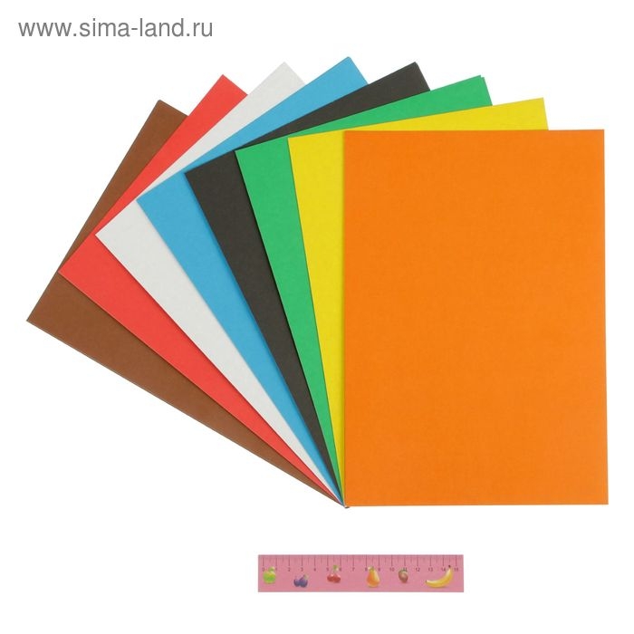 Картон цветной, А4, 8 листов, 8 цветов, немелованный, двусторонний, в пакете, 180 г/м², Человек-паук