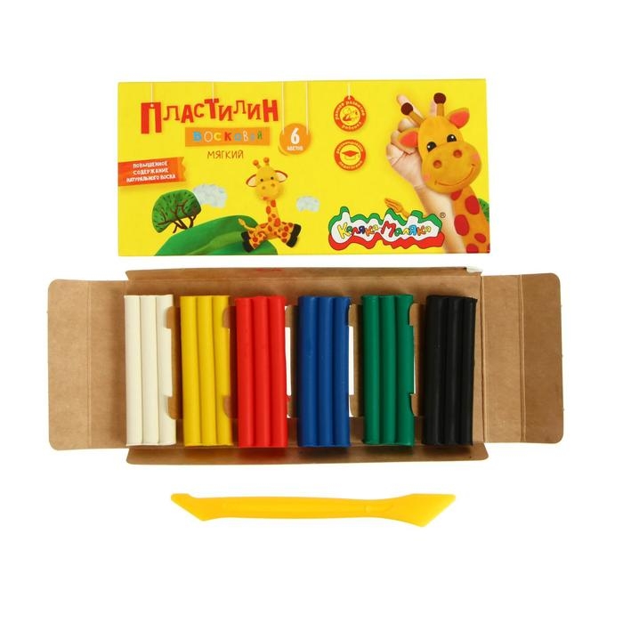 Пластилин мягкий (восковой) 6 цветов 90 г "Каляка-Маляка", со стеком