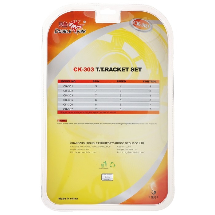 Набор для настольного тенниса Double Fish, 2 ракетки, 3 мяча