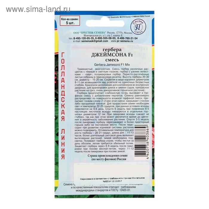 Семена комнатных цветов Гербера "Смесь", F1, 5 шт.