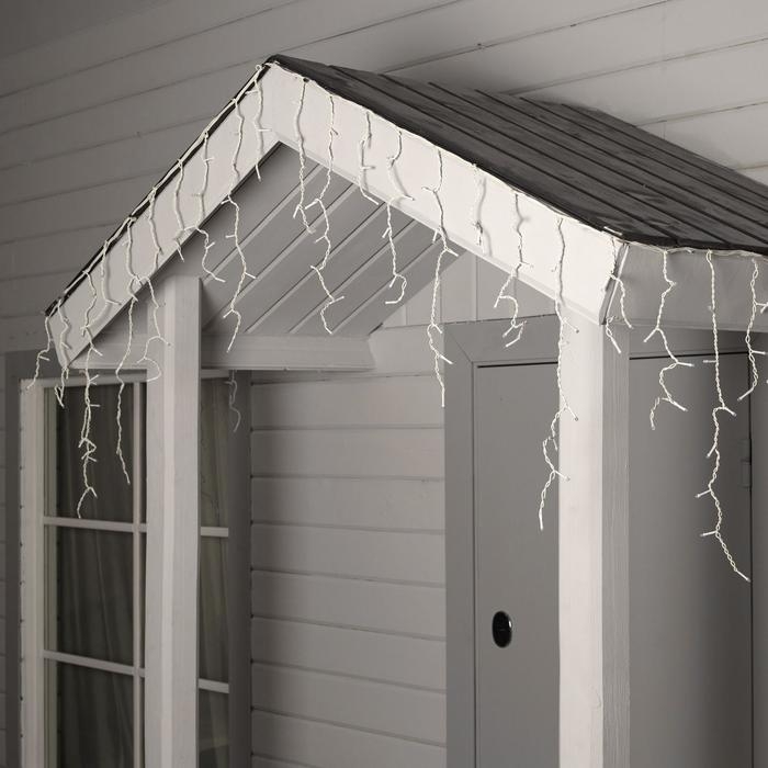 Гирлянда «Бахрома» 4 × 0.6 м, IP44, белая нить, 180 LED, свечение тёплое белое, 8 режимов, 220 В