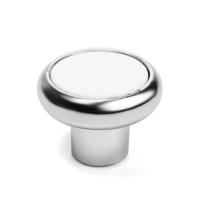 Ручка кнопка ТУНДРА РК101, цвет хром с белой вставкой