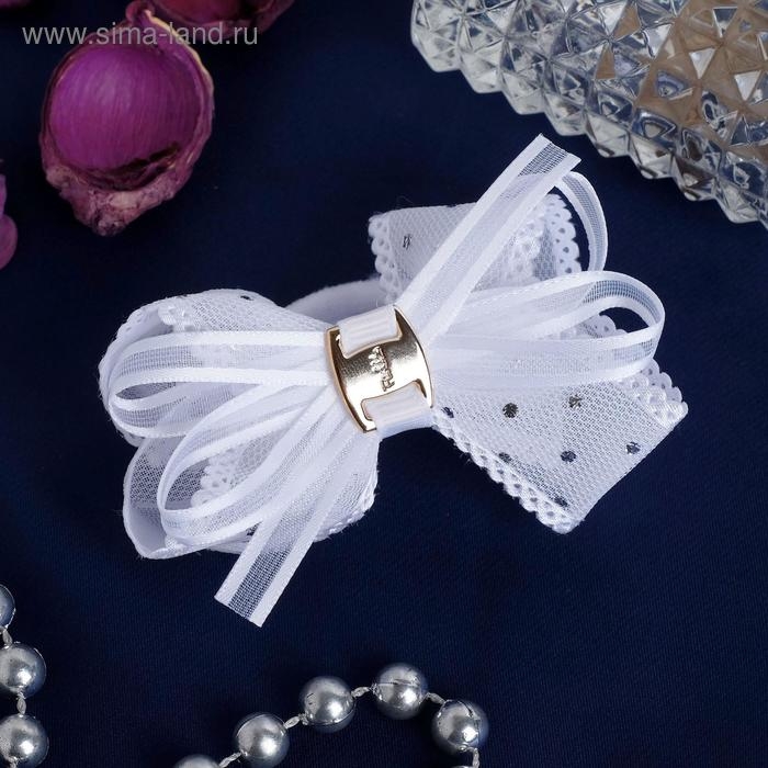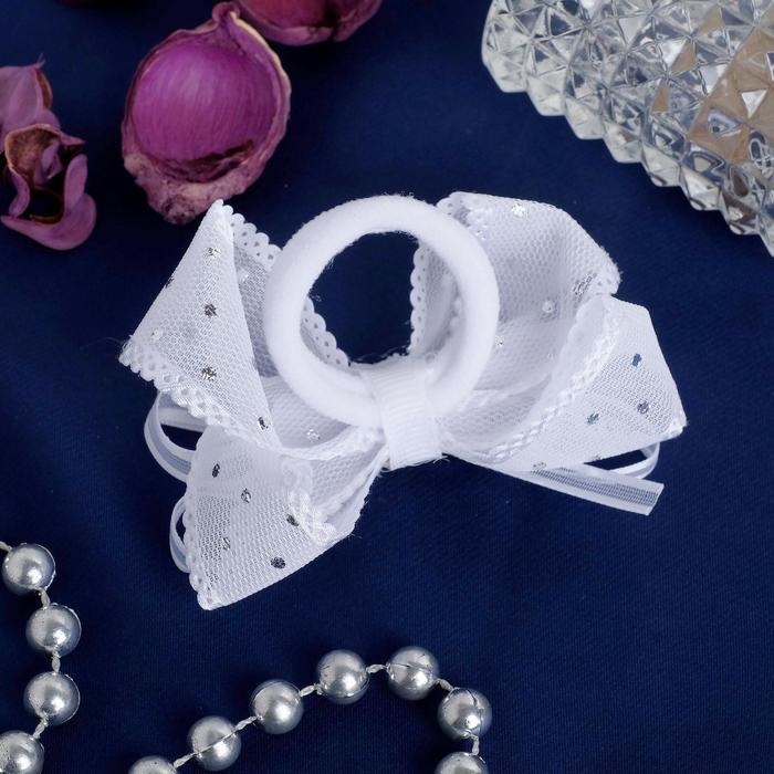 Резинка для волос "Школьница" бант ленточка горох, d-7 см, белый
