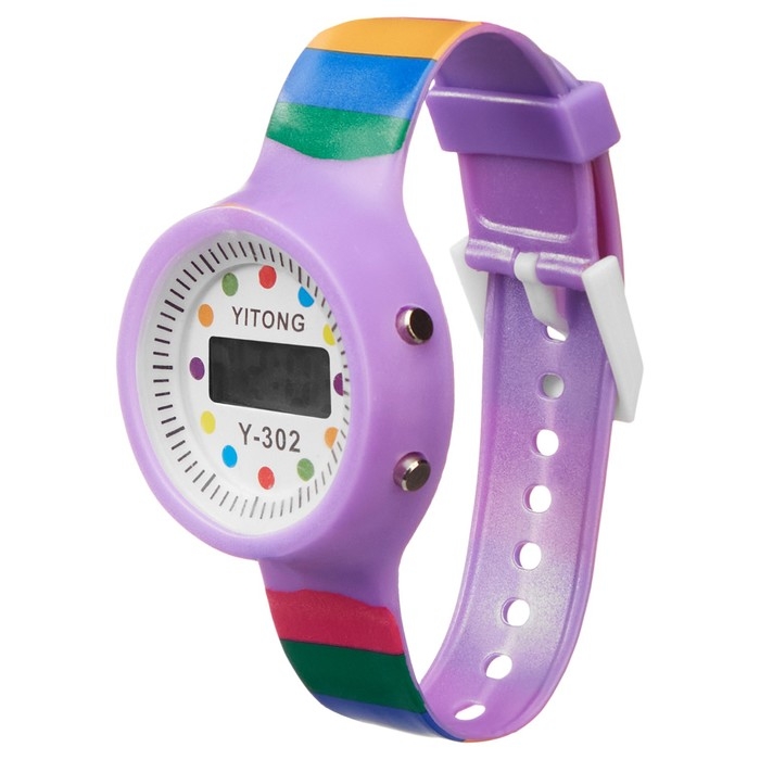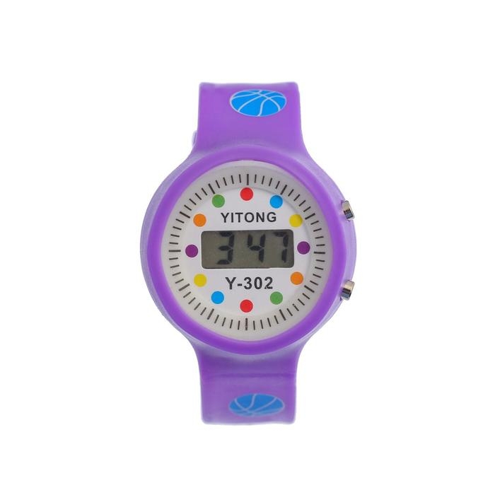 Часы наручные электронные, детские "Горошина", ремешок силикон, l-22 см, фиолетовые