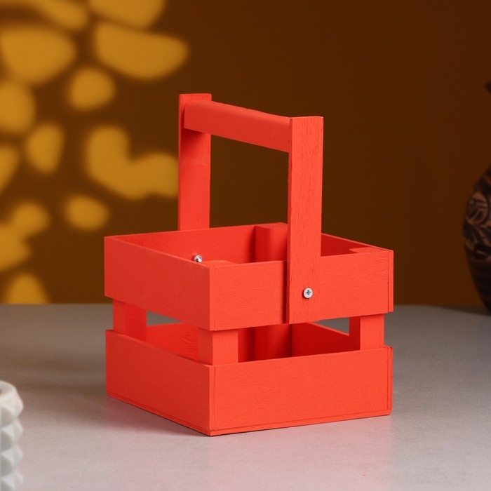 Кашпо деревянное 12×11×9 см "Однушка Лайт", двухреечное, красный Дарим Красиво