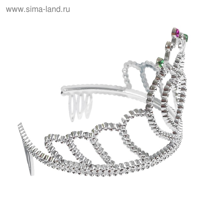Корона «Сердечко», с камнями, цвета МИКС