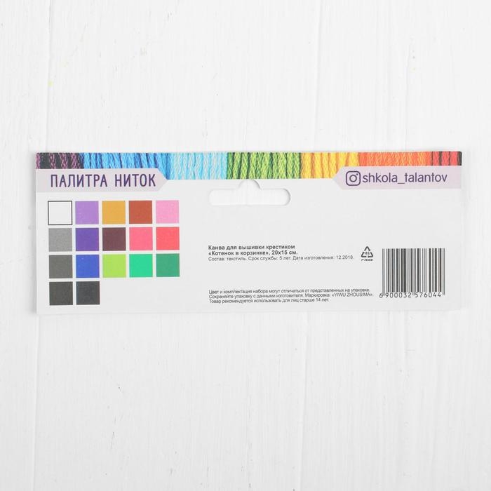 Канва для вышивки крестиком «Котёнок в корзинке», 20х15 см