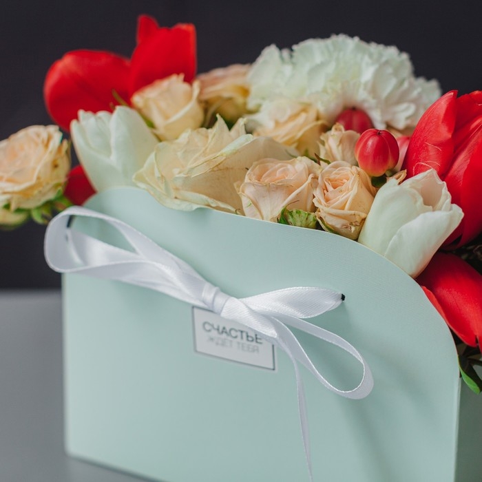 Коробка для цветов складная, мятная «Счастье ждёт тебя», 17 × 13 × 7 см