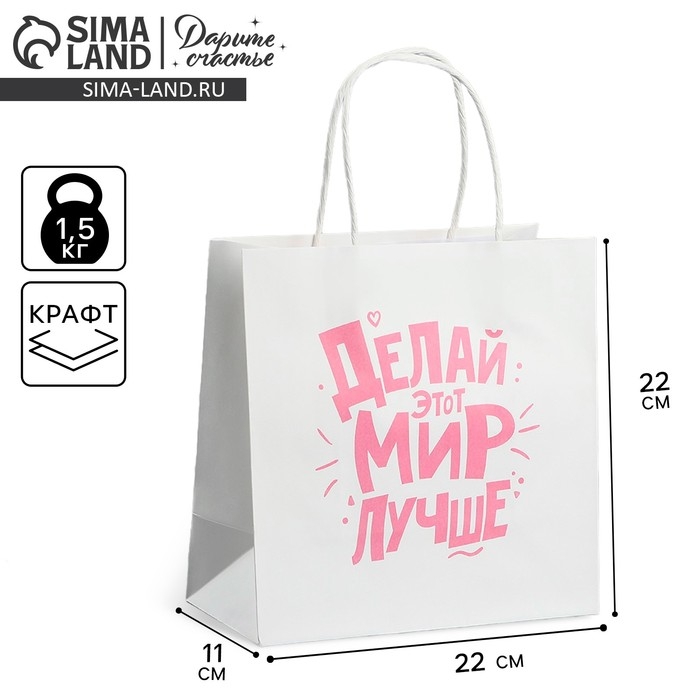 Пакет подарочный, упаковка, «Делай этот мир лучше», 22 х 22 х 11 см
