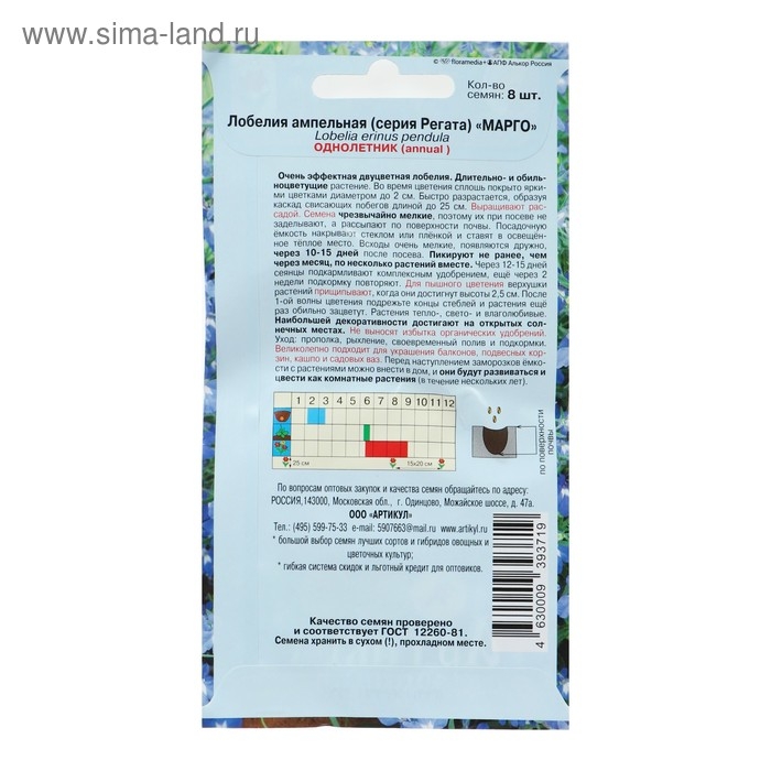 Семена цветов Лобелия Регатта "Жемчужный Водопад" ампельная, О, цп, 8 шт.
