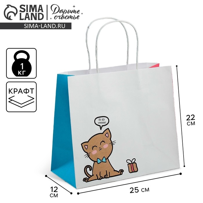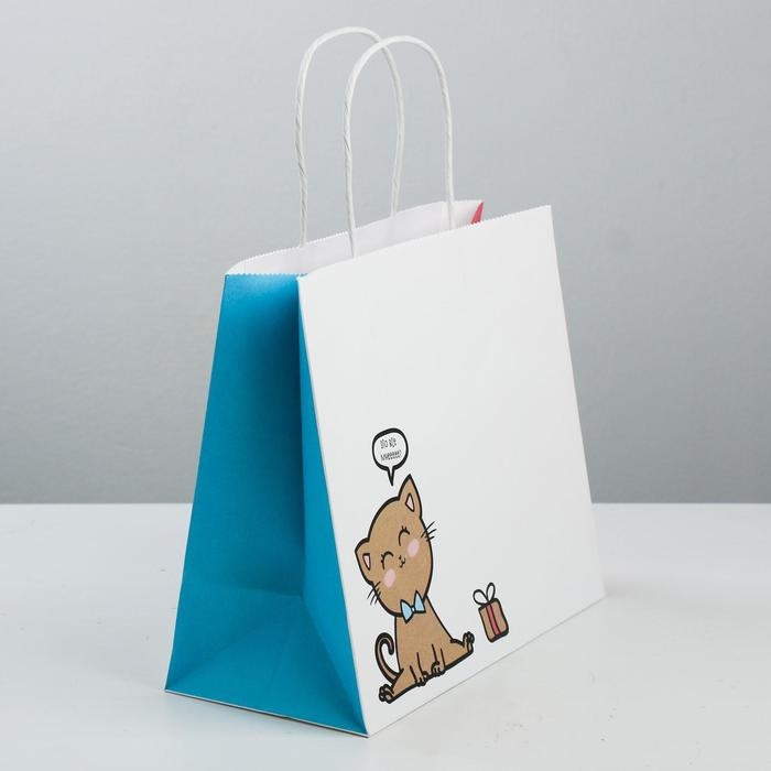 Пакет подарочный крафтовый, упаковка, «Котик», 25 х 22 х 12 см