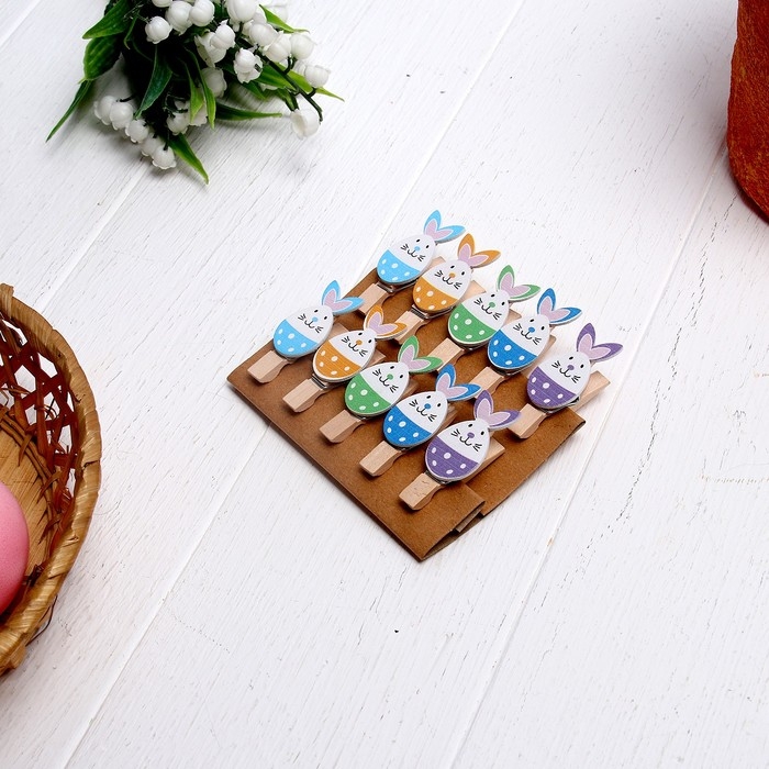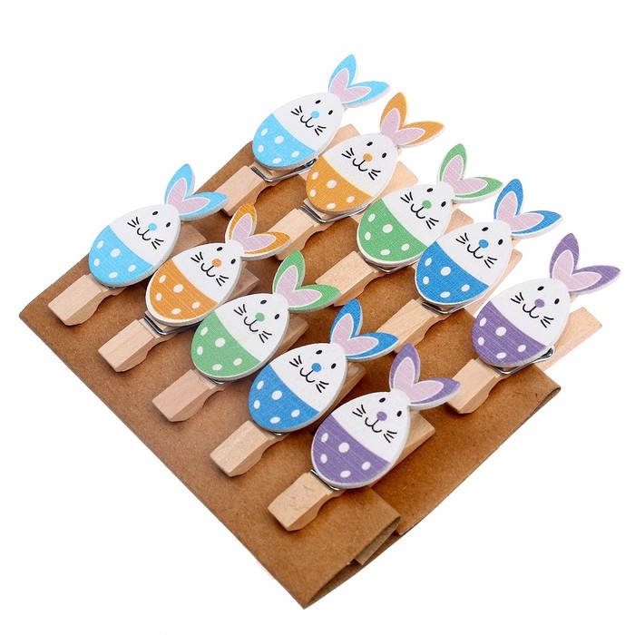 Прищепки декоративные с веревкой для подвеса "Пасха", 10 шт.