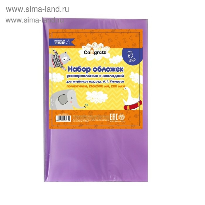Набор обложек ПЭ 5 штук, 265 x 500 мм, 200 мкм, для учебника Петерсон, универсальная, с закладкой, МИКС