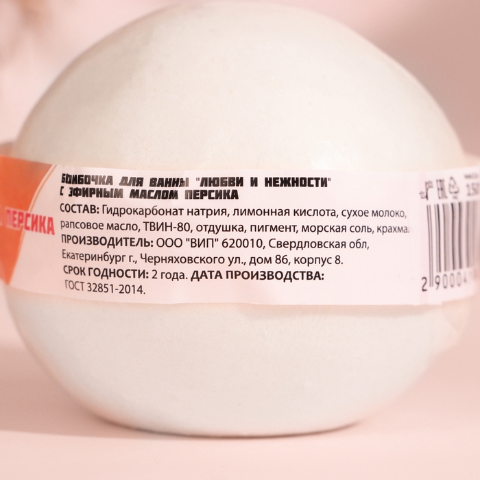 Бомбочка для ванны "Любви и нежности" с эфирным маслом персика, 140 гр