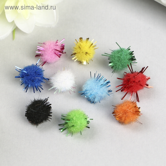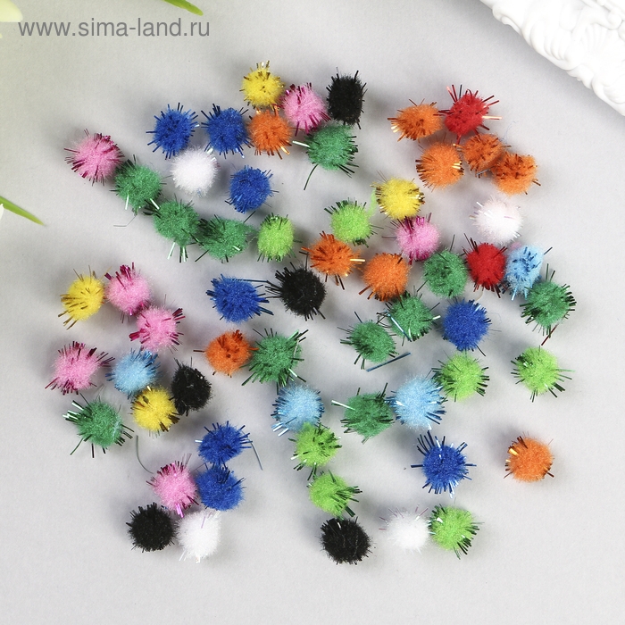 Помпоны для творчества, блестящие, 10 цветов, 8 мм, (набор 60 шт)